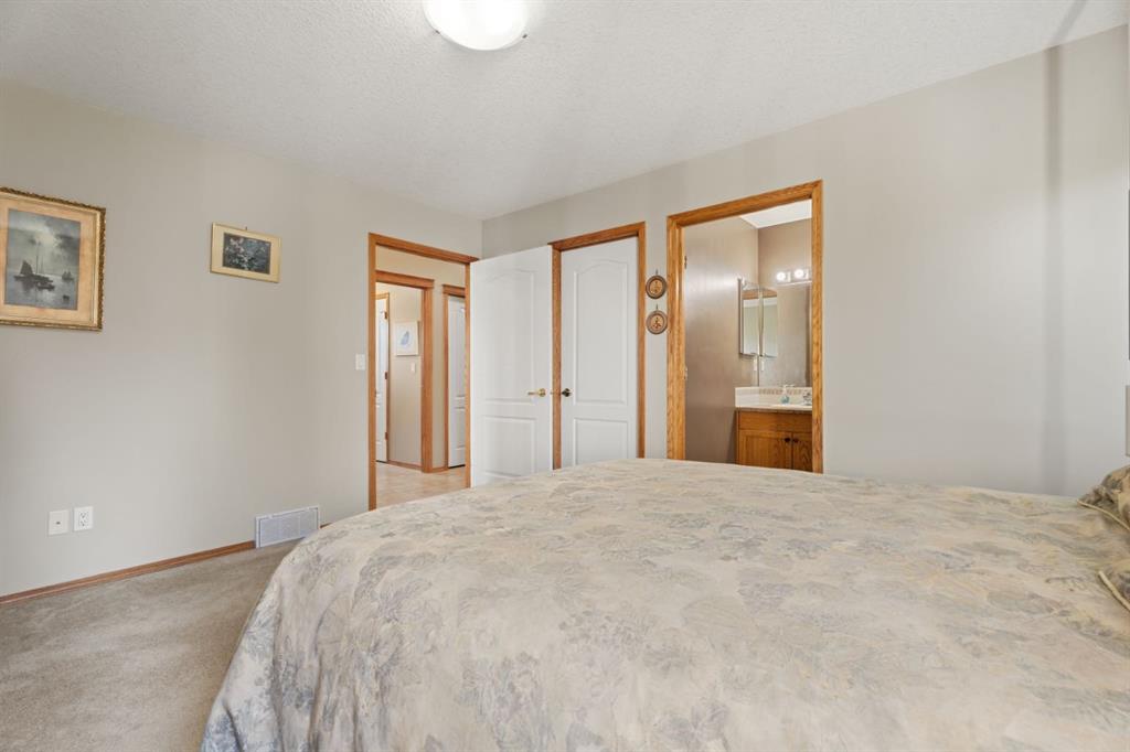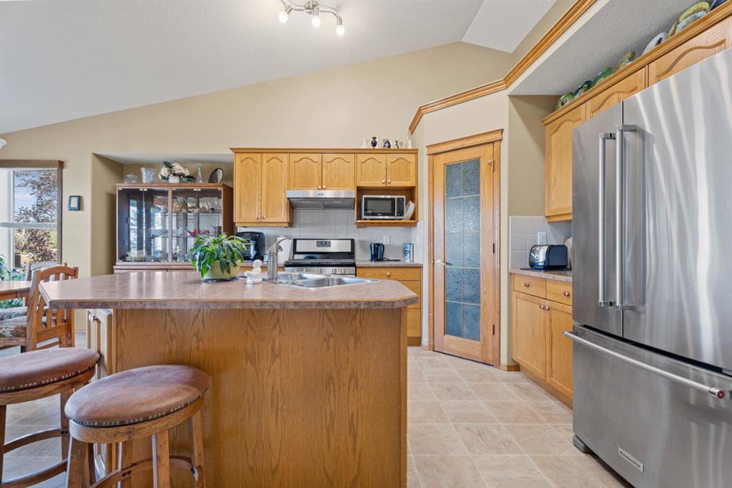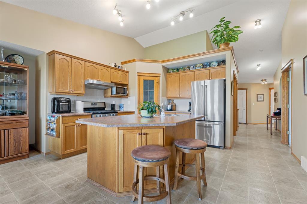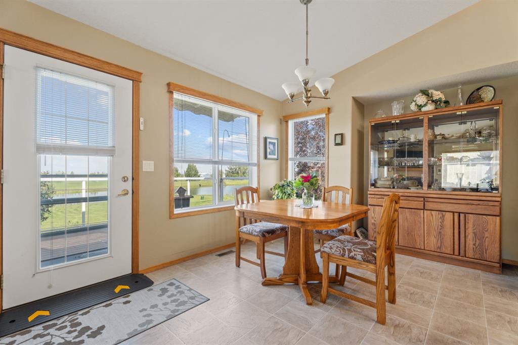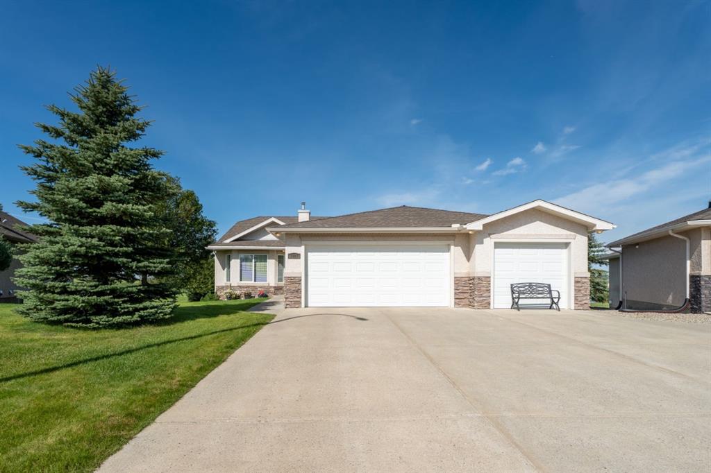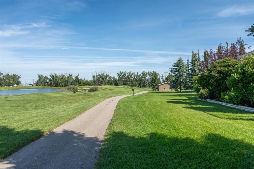 Welcome Home! Imagine life backing onto the 18th hole with a pond view, a view of the prairie fields and the mountains with a TRIPLE GARAGE for the Golf Cart or extra vehicle parking or storage! This well maintained charming bungalow has it all including a stucco exterior, air conditioning, a GAS FIREPLACE in the main floor living room and HEATED FLOORS in the fully finished basement! Retire or slow down your pace of life to the wonderful community of Vulcan, with a hospital, close to shopping, schools and ...