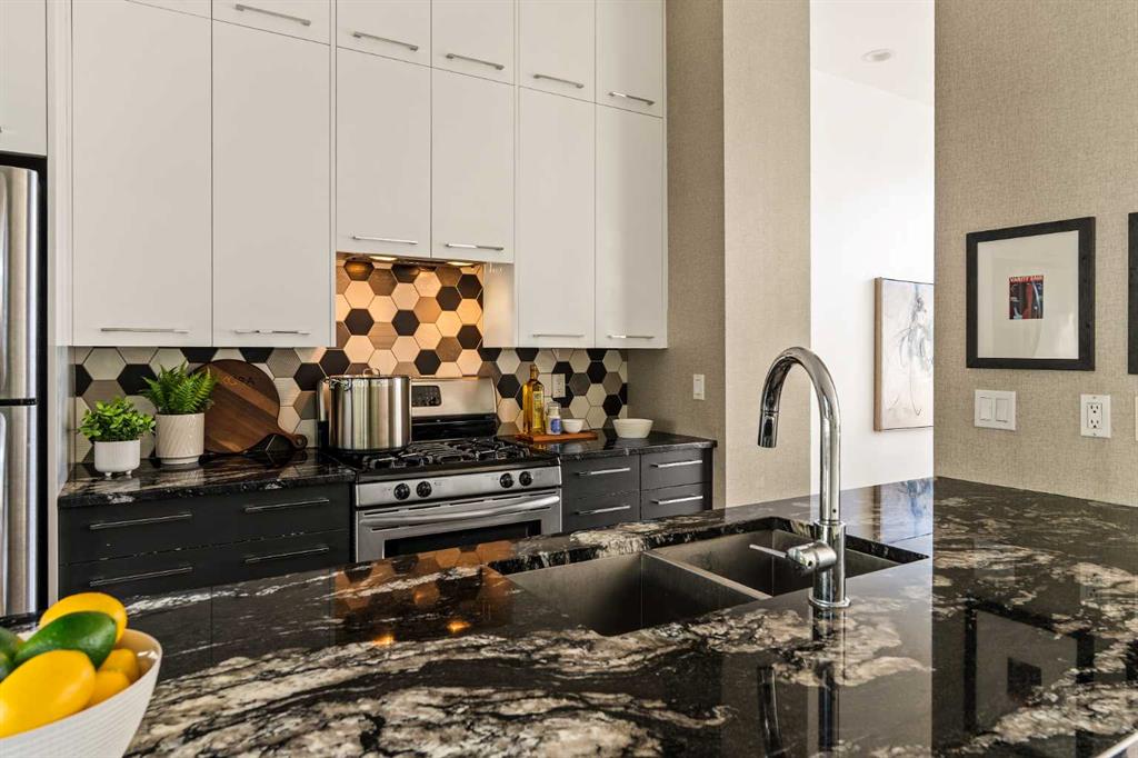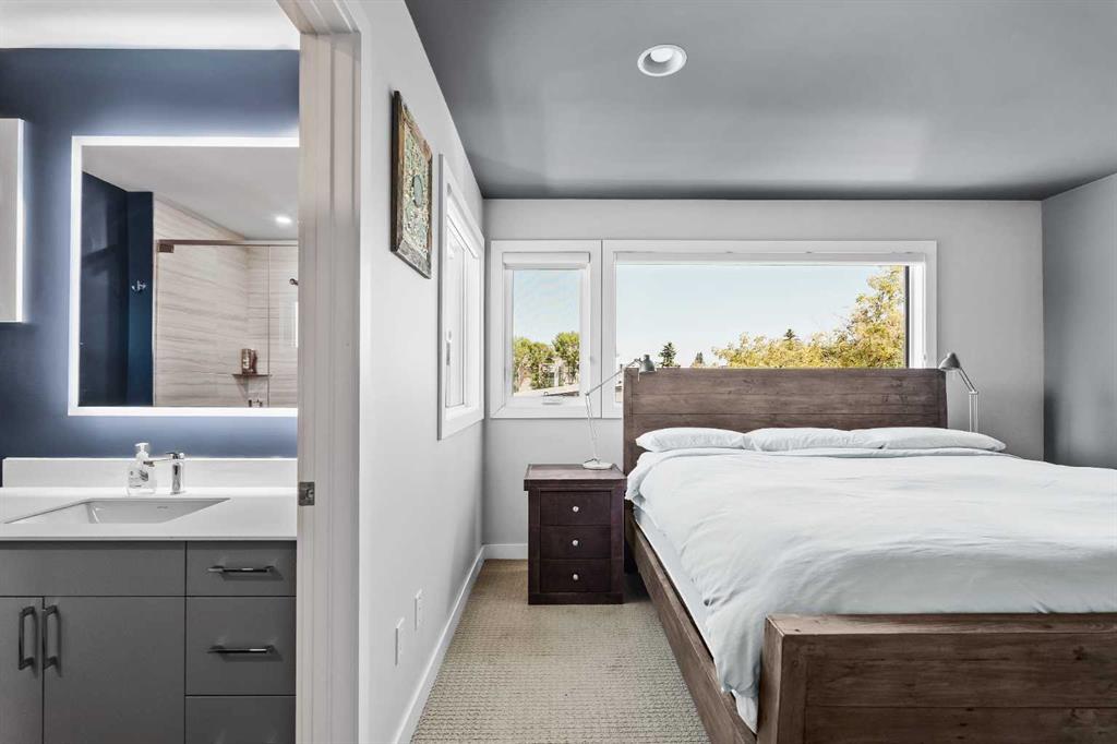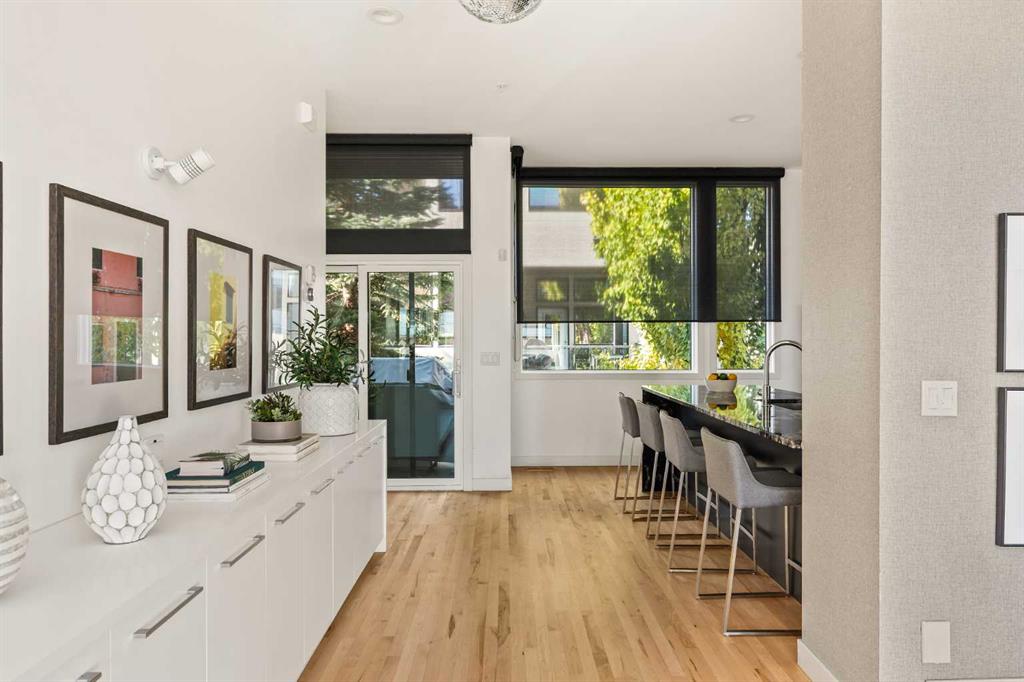This striking three-level end-unit townhouse, designed by renowned architect Jeremy Sturgess, offers exceptional style and functionality in a prime inner-city location. Thoughtfully updated and impeccably maintained, the home features a heated double attached garage, private front courtyard entrance, and an expansive rooftop deck with captivating views of downtown—perfect for entertaining. The ground level welcomes you with a spacious foyer, a versatile office/gym/den, and a fully renovated three-piece bat...