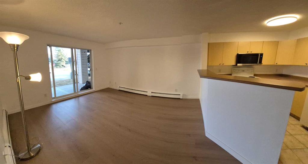 Welcome home to your easily accessible ground level, 2 bedroom 1 bath condo that i includes in suite laundry. With urgent care across the street, numerous dining and shopping right next door, and many schools (catholic K-9 and public K-12) walking distance, driving becomes optional. This is a beautiful spacious east facing unit that brings in the morning sun. Freshly painted makes it a blank canvas for you to add your personal touch. Newly installed 8mm luxury vinyl plank flooring makes easy to clean and ma...