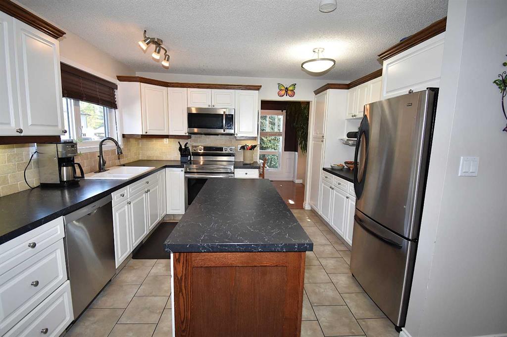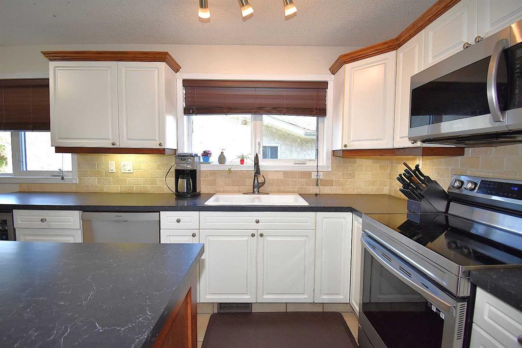 Welcome to 124 Seabolt Crescent – a lovely, unique home located on a quiet street. Upon entering, you will find a large, tiled entryway that leads into the living room which is complete with a piano & a fireplace, the formal dining room, beautiful kitchen & family room. Or, turn the other way and it takes you to a main floor bedroom, a bath/laundry room, and the attached garage. The living room & dining rooms feature vaulted, pine wrapped ceilings. There are lots of windows allowing tons of light into t...