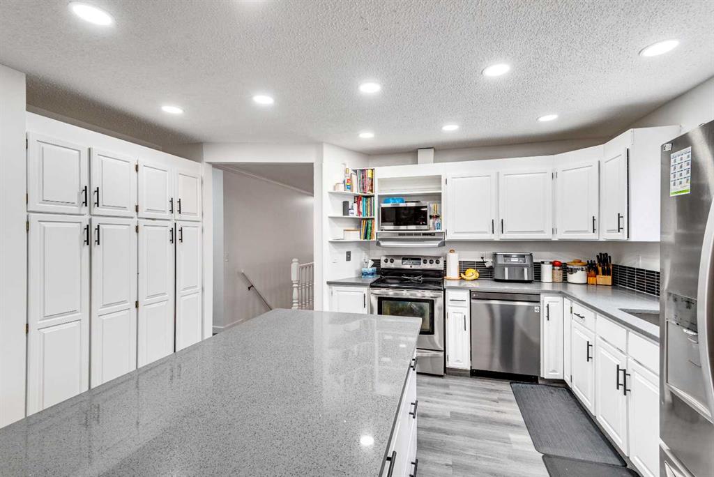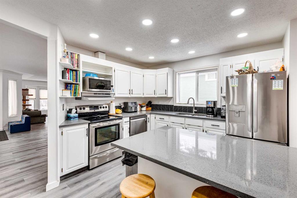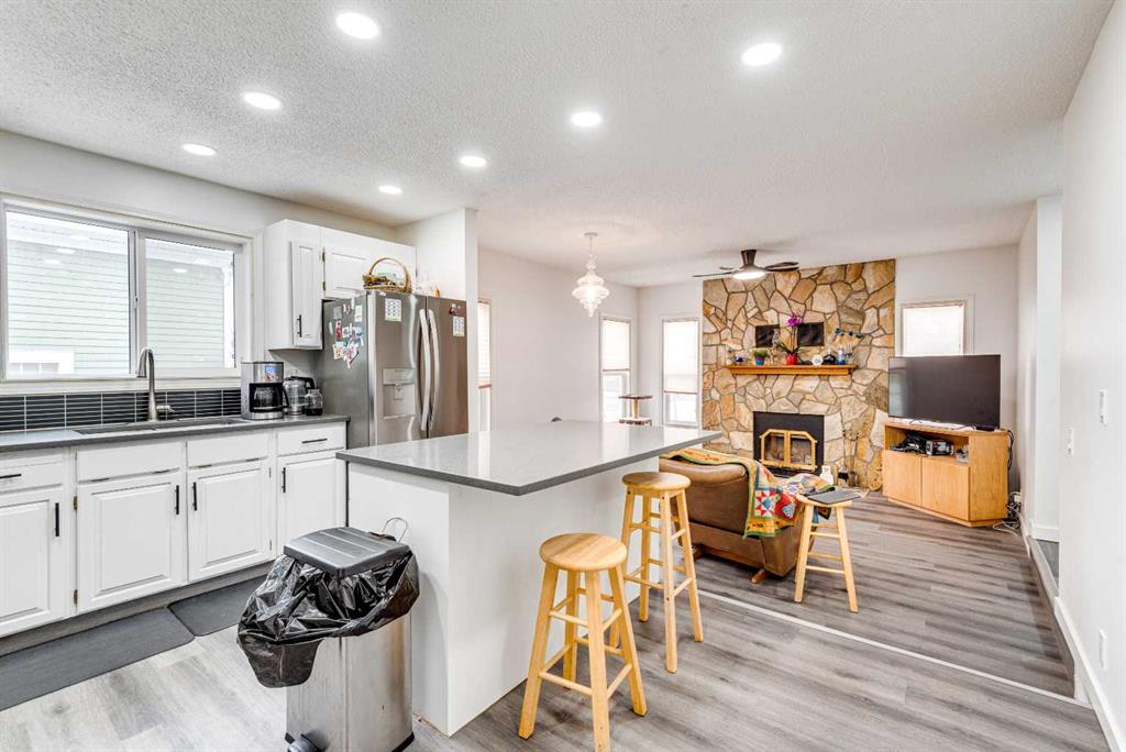Welcome to this spacious and inviting family bungalow, offering 5 bedrooms and 3 bathrooms, this home provides room for everyone both inside and out. The main floor features a functional layout with front living room and dining room as well as access to the attached garage. You will enjoy preparing meals in the updated kitchen with convenient island with seating, quartz countertops and abundant storage, adjacent to a cozy sunken family room highlighted by a charming wood-burning fireplace. You’ll find 3 bed...