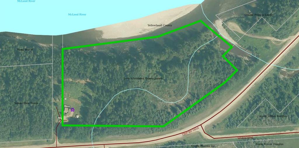 12.9 acres with Mcleod River front on north side of property and boarders the Carrot Creek on the east side. Very private back yard overlooking the river. Home has double attached garage and a separate basement entrance to allow for an extra suite.