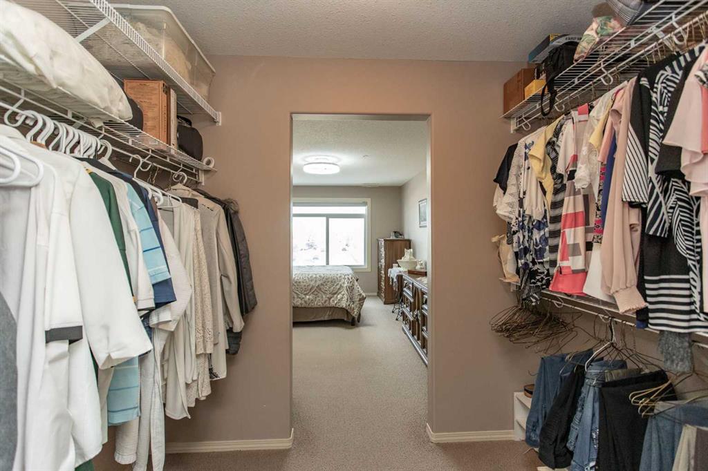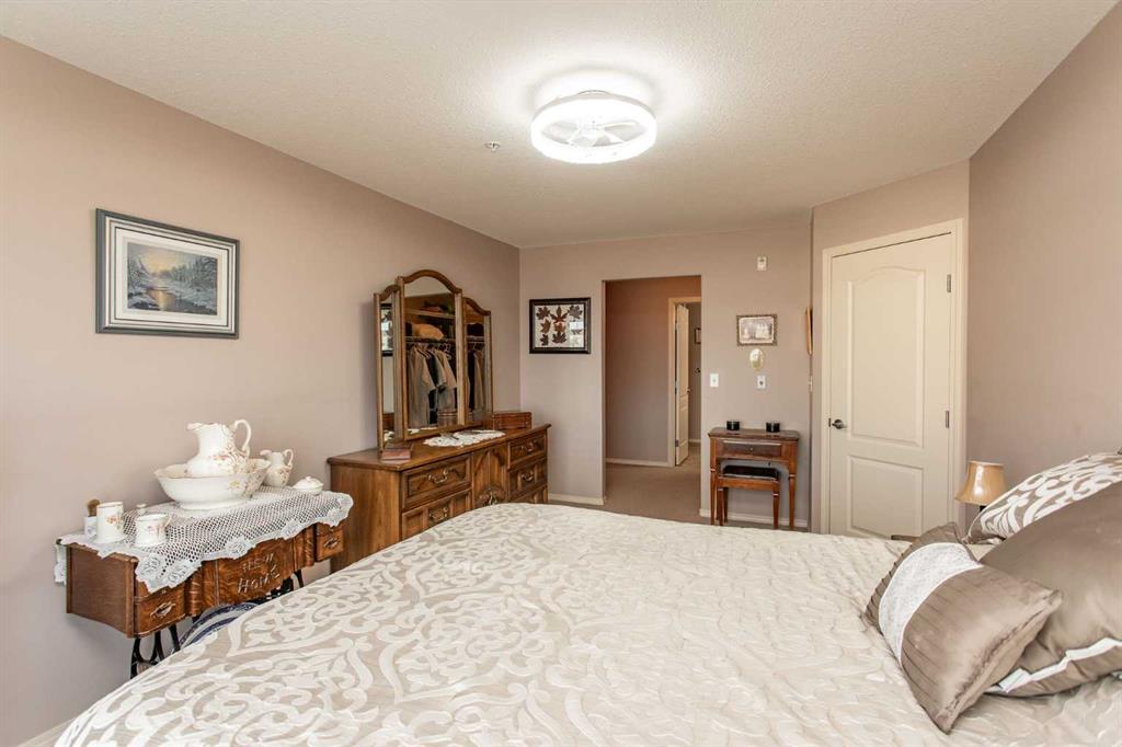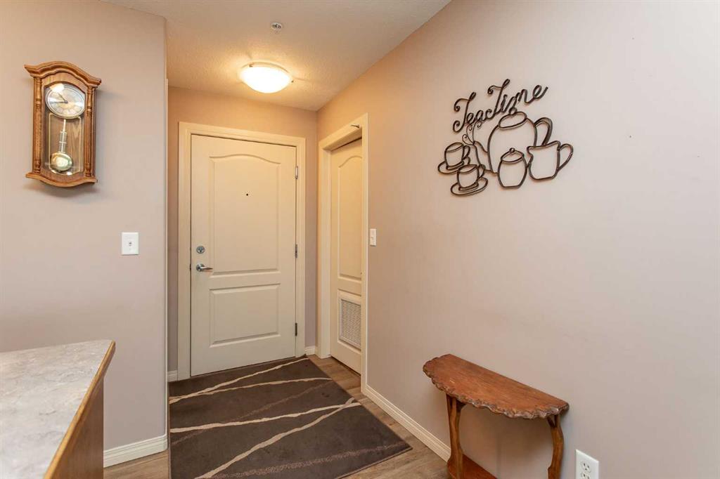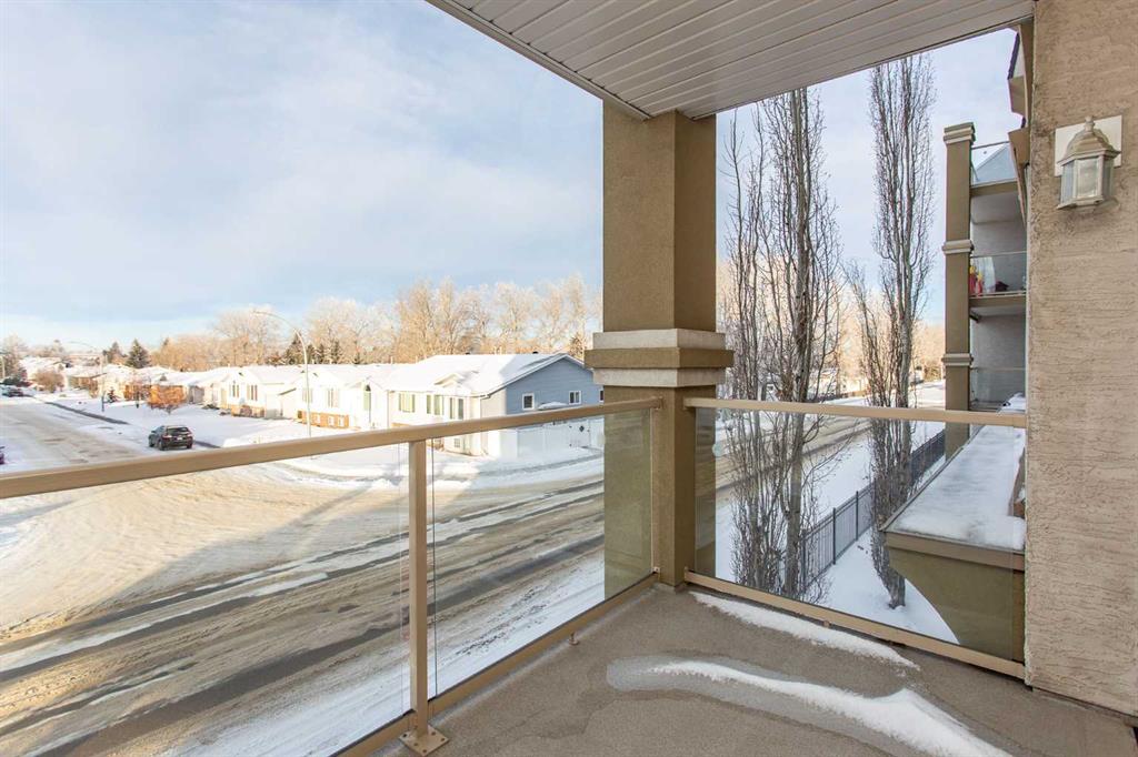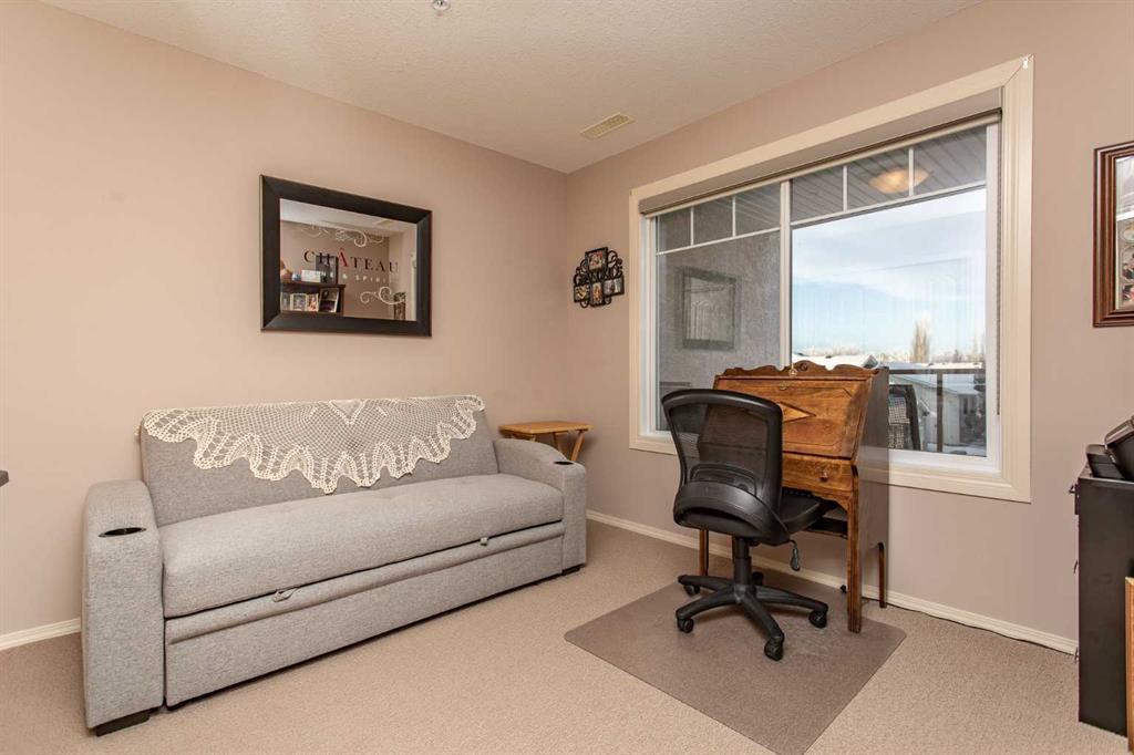 Chateau Lacombe offers an exceptional opportunity to own a condominium in one of Lacombe's premier adult living developments. Conveniently located within walking distance to downtown amenities, shopping, and walking trails, this centrally situated project provides both comfort and accessibility. This well-maintained second-floor unit features west-facing windows with attractive views of the surrounding residential neighborhood. Recent updates, including new flooring, backsplash, blinds, one year old refrige...