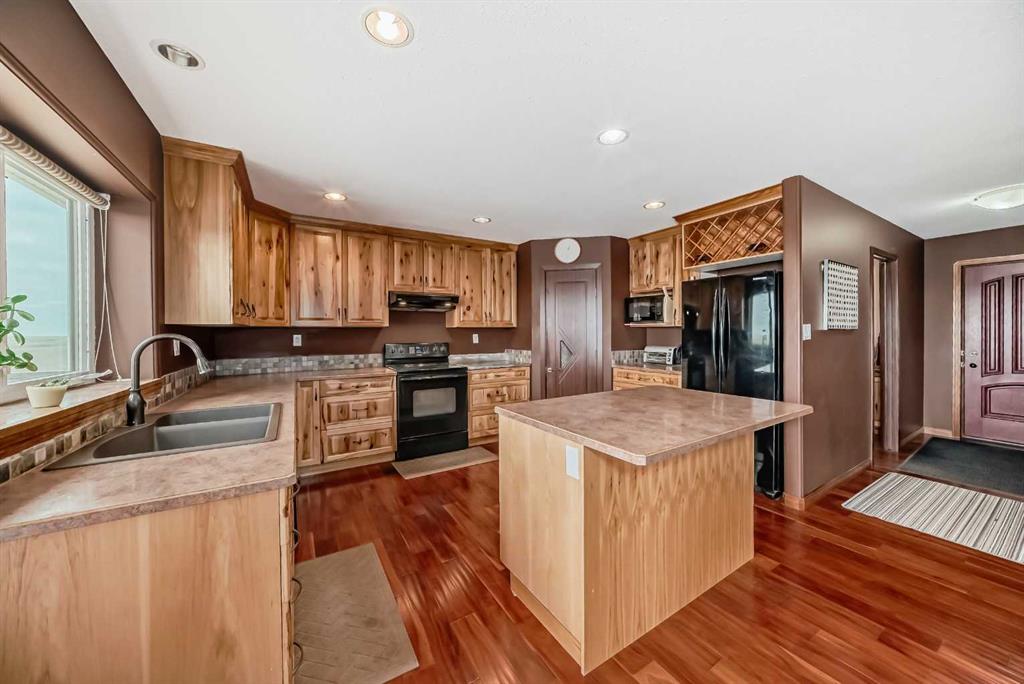 Visit REALTOR® website for additional information. Discover rural elegance at 10 Hill Crescent, Hill Estates. This 4-bed, 3-bath home on 4.5 acres offers panoramic views of Pot Hole creek. Features include hardwood floors, a cozy wood stove, and a spacious kitchen. With a walk-out basement, fenced yard for horses, and energy-efficient updates including geo-thermal heating and cooling and ICF block construction from the basement to the roof trusses. It's a haven just 10 mins from Lethbridge.