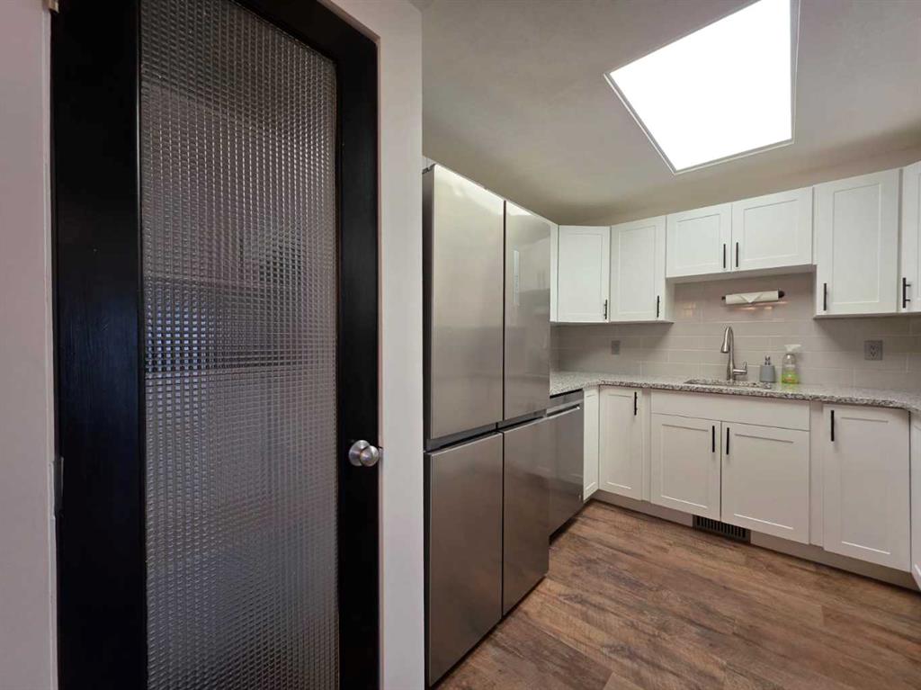 South side condo across from Henderson Lake and Golf Course! Come see this spacious 1275 ft 3 bedroom, 3 bathroom unit which has been completely renovated and updated. Main floor features 2 piece powder room, updated new kitchen with granite countertops, SS appliances and large pantry. A spacious island with storage and seating for casual dining, all new modern light fixtures, bright white walls with black doors and accents, and hand scraped laminate flooring throughout entire unit. There’s a sunken living ...