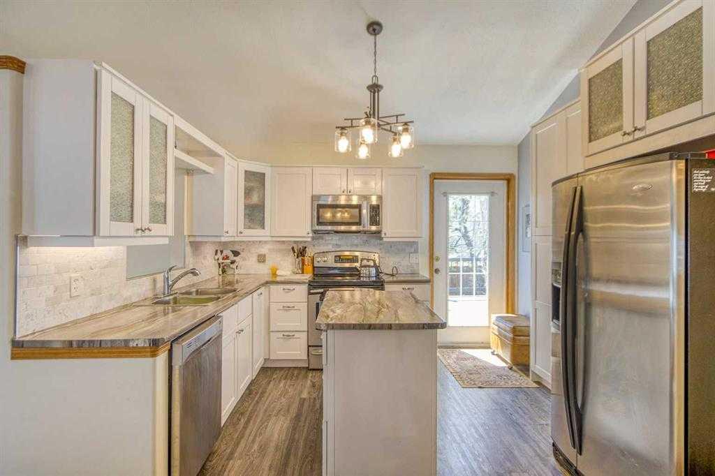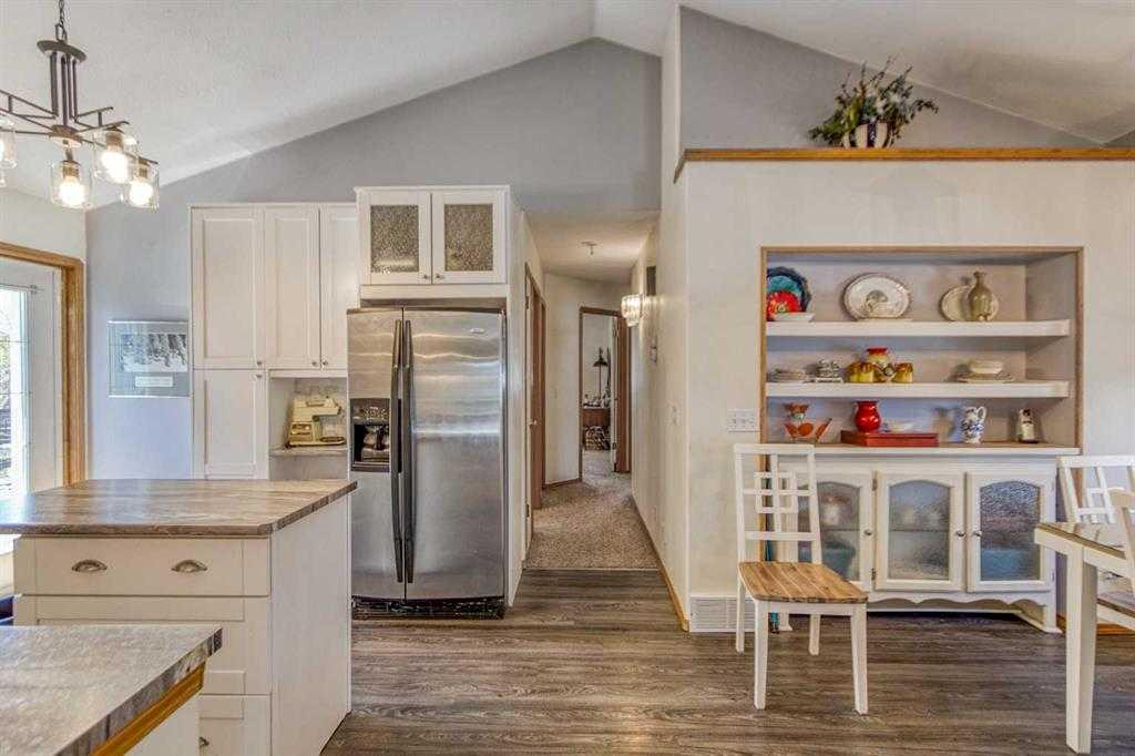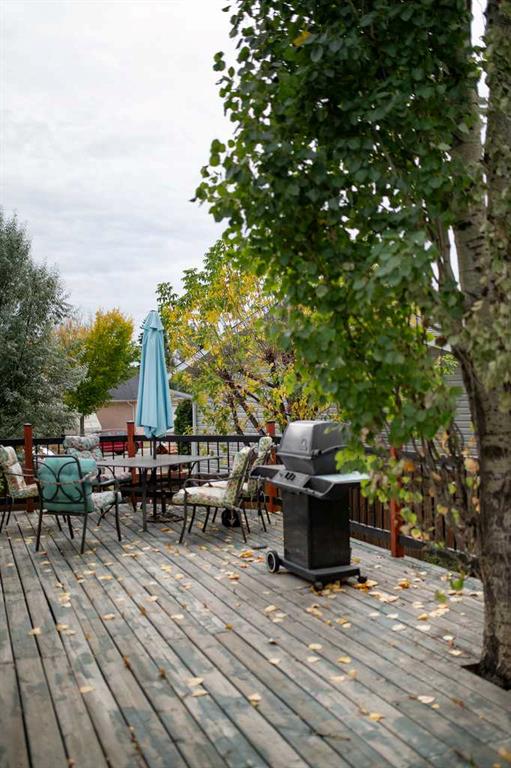 Located in a quiet cul-de-sac in Strathmore’s desirable Greenwood Meadows, this well-maintained home offers 4 bedrooms, 2 bathrooms, vaulted ceilings, and two fireplaces. The fully developed lower level includes a separate entrance, perfect for extended family, home based business or future suite potential. Enjoy the huge south/west-facing deck, perfect for outdoor entertaining, overlooking a large yard with garden space, RV parking, and room to build a second garage or workshop. The oversized, heated doubl...