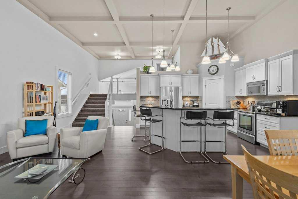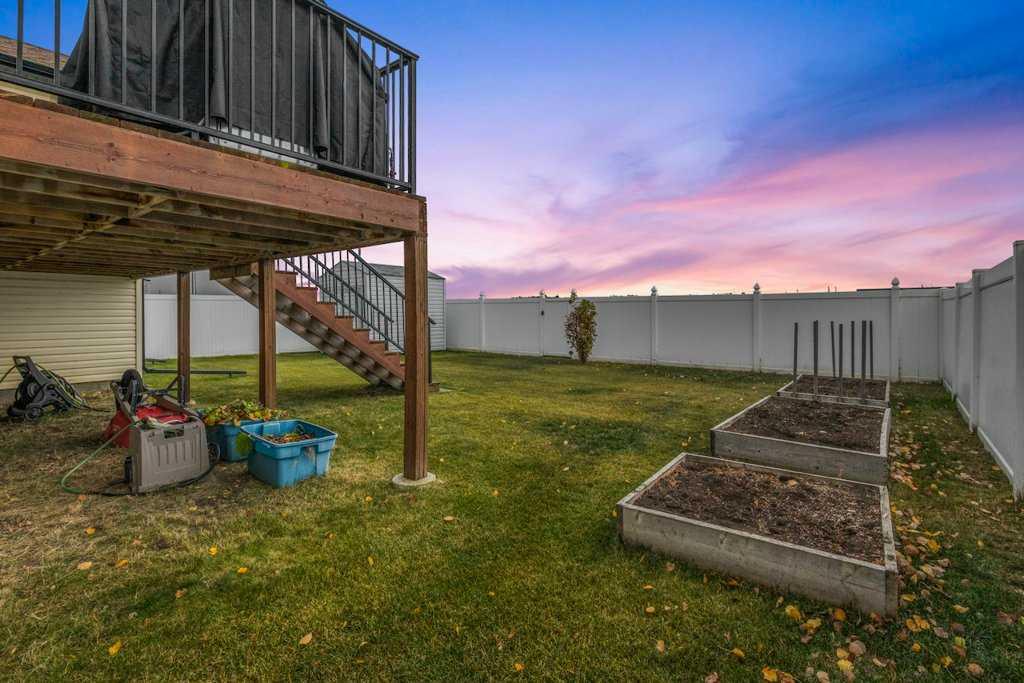 FULLY DEVELOPED 4 BEDROOM, 3 BATH MODIFIED BI-LEVEL ~ OVERSIZED DOUBLE ATTACHED GARAGE ~ WEST FACING BACKYARD WITH NO NEIGHBOURS BEHIND ~ Covered front entry welcomes you and leads to a spacious foyer with tile flooring ~ Open concept main floor layout complemented by 13' coffered ceilings creates a feeling of spaciousness ~ The kitchen offers a functional layout and features an abundance of cabinets, ample granite counter space including an island with a raised eating bar, full tile backsplash, and stainle...