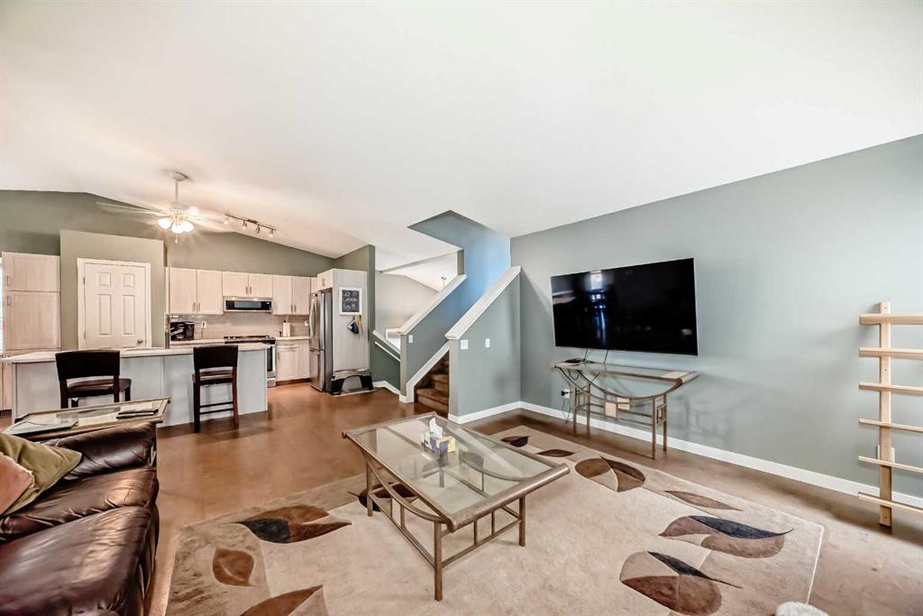 Custom-built home in a prime Copperfield location with over 2200 ft2 of living space! Just steps from Copperfield Park, this property backs onto the scenic greenspace and walking paths, and is near Stillwater Pond. Fast access to major roads makes commuting simple. The main floor features an open-concept living room with vaulted ceilings, a kitchen with lots of custom cabinets, quartz counters, and stainless-steel appliances, plus a dining area with balcony access. The balcony is large and has a great view ...