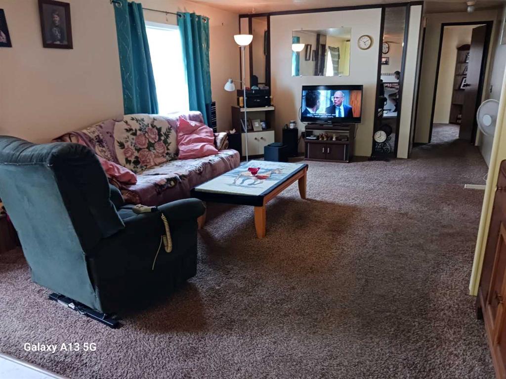 30 day possession possible on this Fleetwood home located in Wetswood Court mobile home park in Innisfail. Very different floor plan. from factory.This home is a 2 bedroom. Primary Bedroom has cheater door to main 4 pc bath and, bedroom #2 located at the very far opposite end has it's own 3 pc ensuite. Upgraded carpet in the living room, linoluem in the dining area, kitchen and , hall way. Fridge and washing machine up graded. Lots of vinyl windows, great addition for computer room or study, wood burning st...