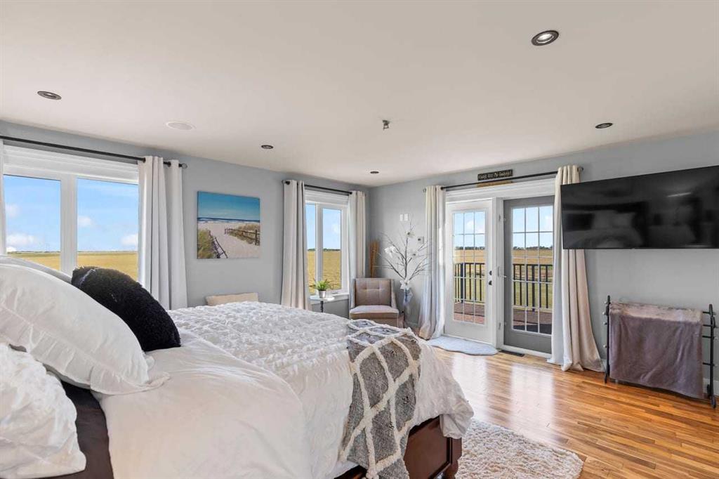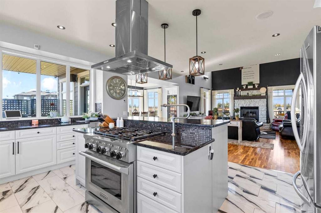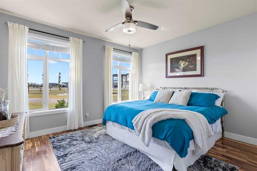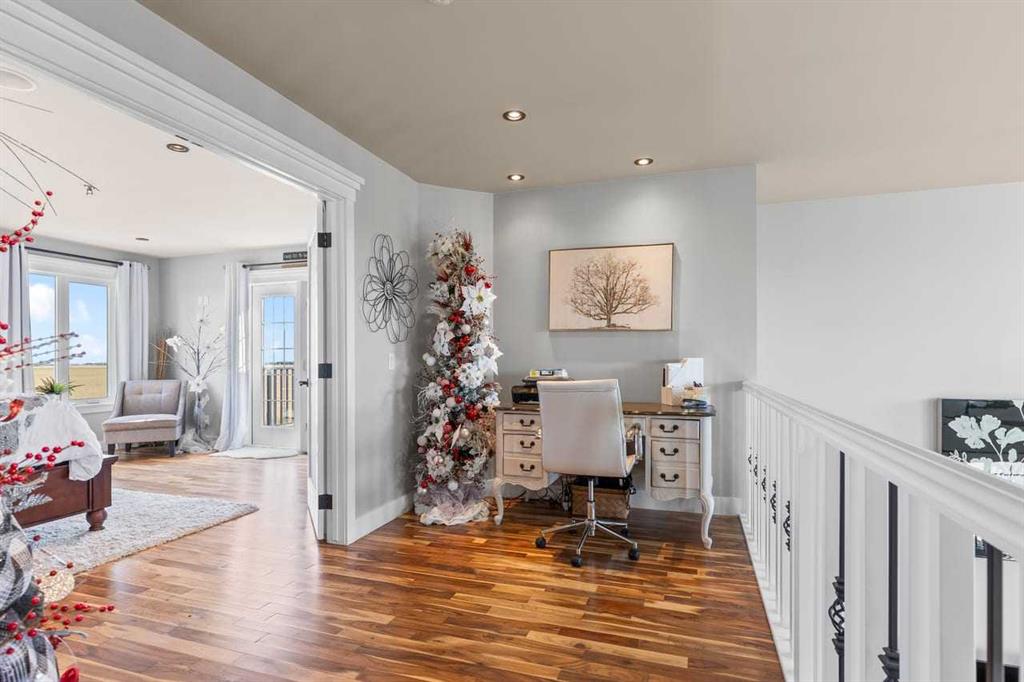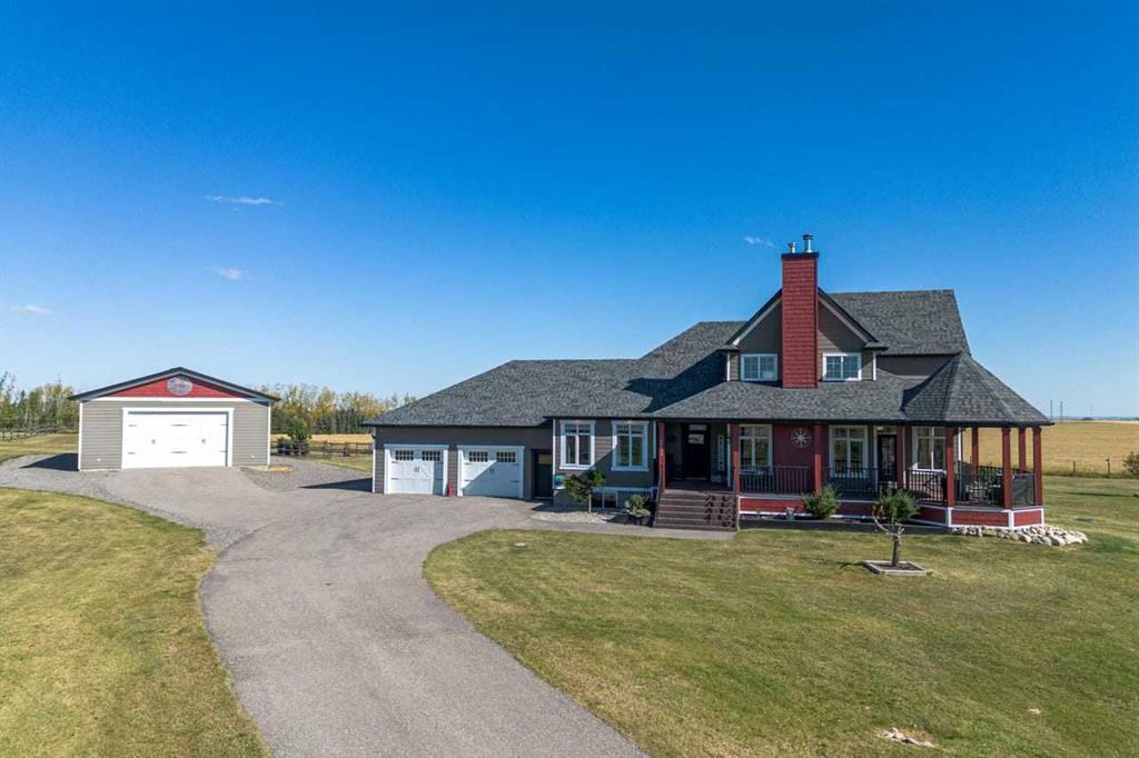 Introducing a stunning executive two-storey home just minutes from Calgary, all on paved roads! Built in 2011, this custom-designed and updated residence offers over 3,700 sq. ft. of beautifully developed living space. Nestled in the prestigious Serenity Estates subdivision, this home sits on a highly sought-after end lot and boasts more than 2.26 acres of titled property. As you step into the main floor, you’ll be greeted by gleaming acacia hardwood floors, impressive 18-foot vaulted ceilings and large, br...