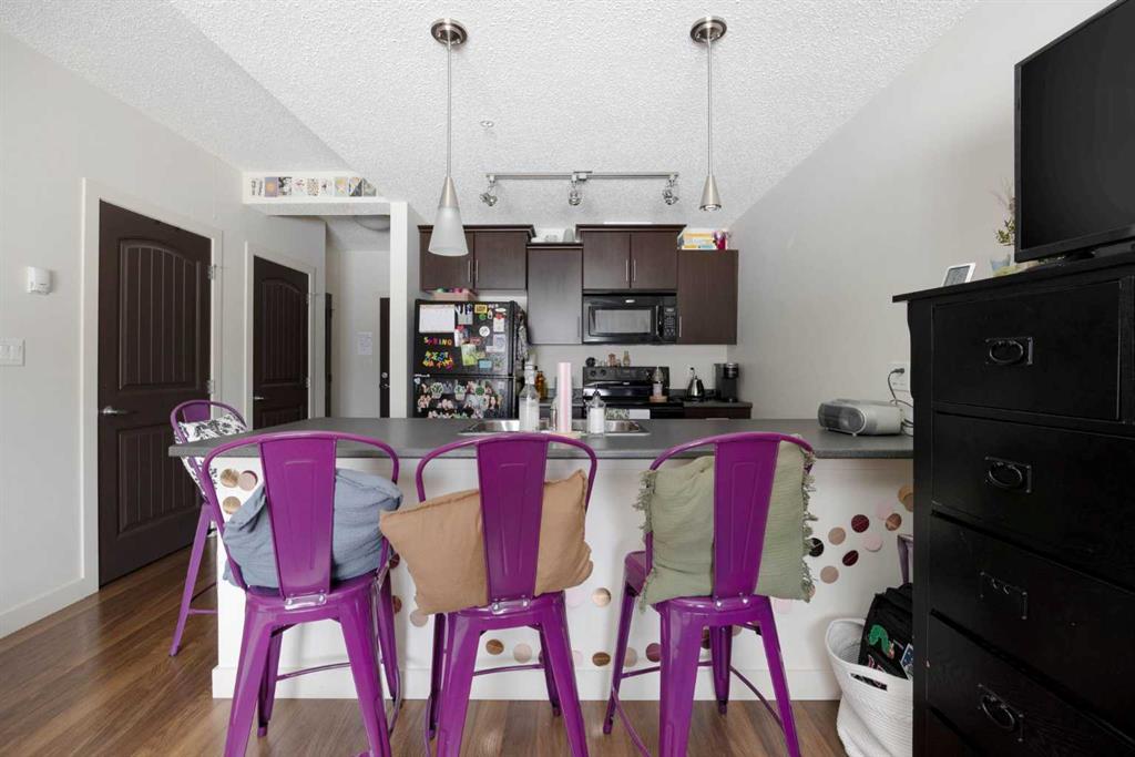 Whether you are downsizing, breaking into ownership or looking for a sure-fire investment property, this one is going to check all of the boxes. This studio suite has laminate floors, a built-in Murphy bed, is located on the main floor for easy access, has a patio with a gas BBQ line, and to top it off, has a secured underground parking spot! The Summits are concrete-built with amenities, secured parking, storage, a playground and are just steps from the Commons at Eagle Ridge, Stoney Creek Village, schools...