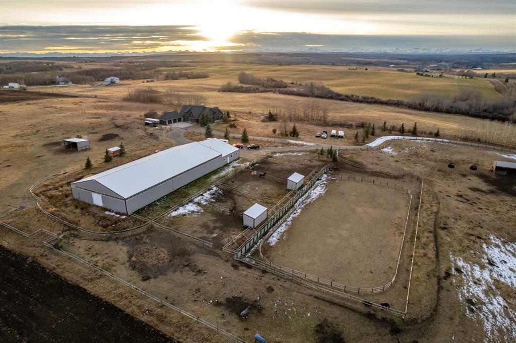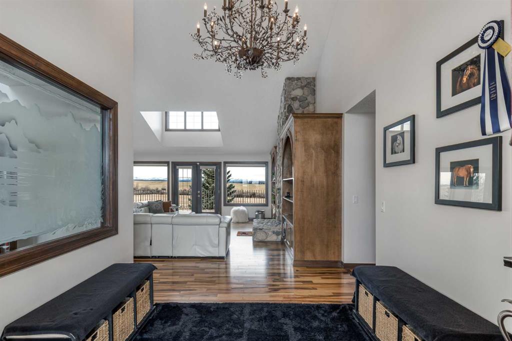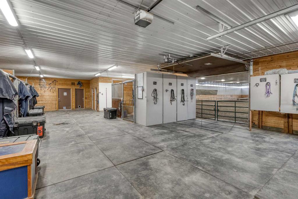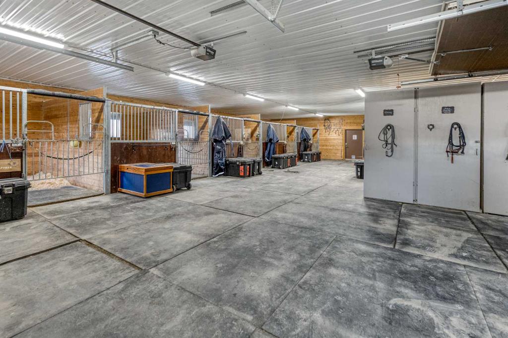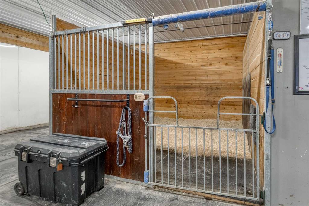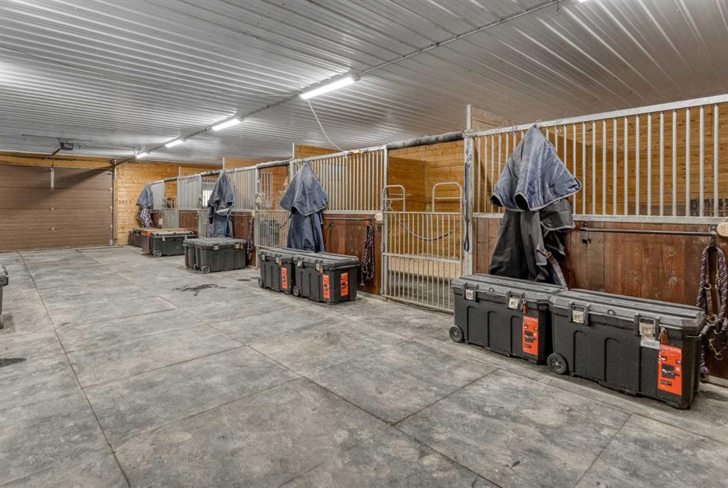 Heated Indoor Riding Arena/Barn, Luxury Walkout Bungalow with Stunning Mountain View | Minutes to Cochrane & Hwy 22 For the equestrian enthusiast, this property is truly exceptional. It is just so amazing and wonderful to be able to walk out to your own private in-door heated riding arena (70’ x 142’) that provides year-round training and riding opportunities. The attached heated barn includes 6 box stalls, a tack room with viewing window and cupboards and a sink to make a coffee or a snack. Along with a...