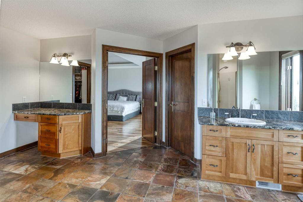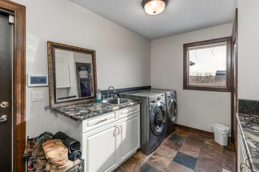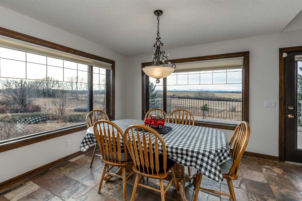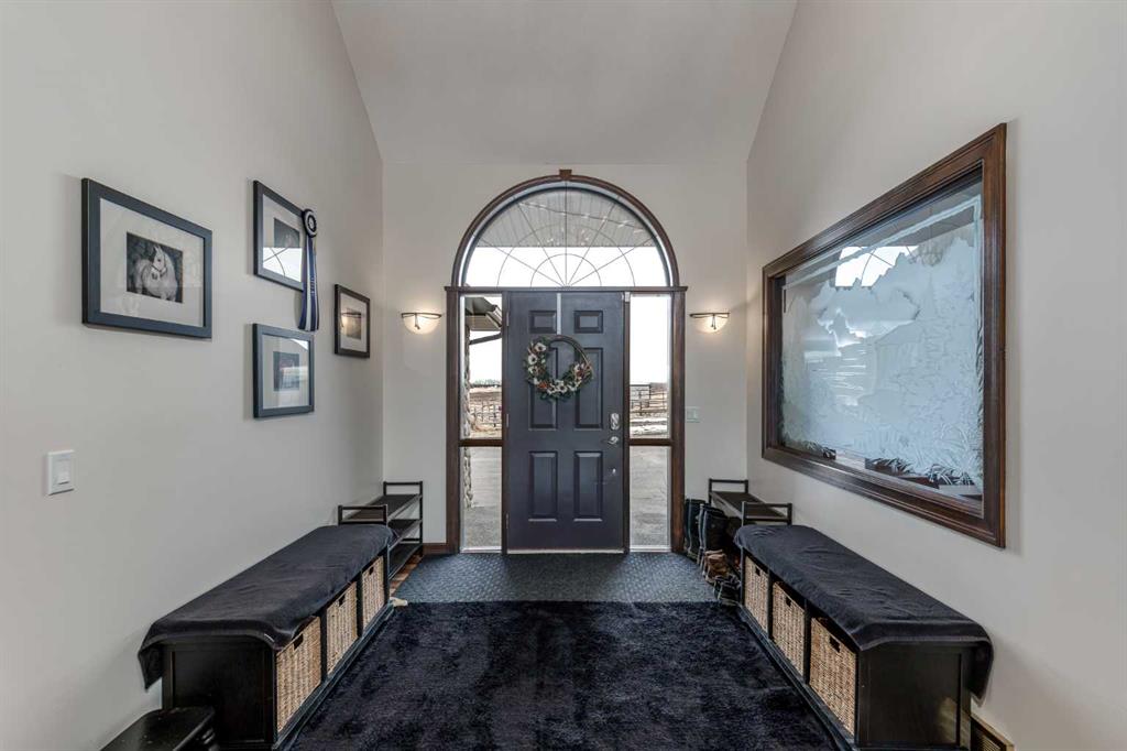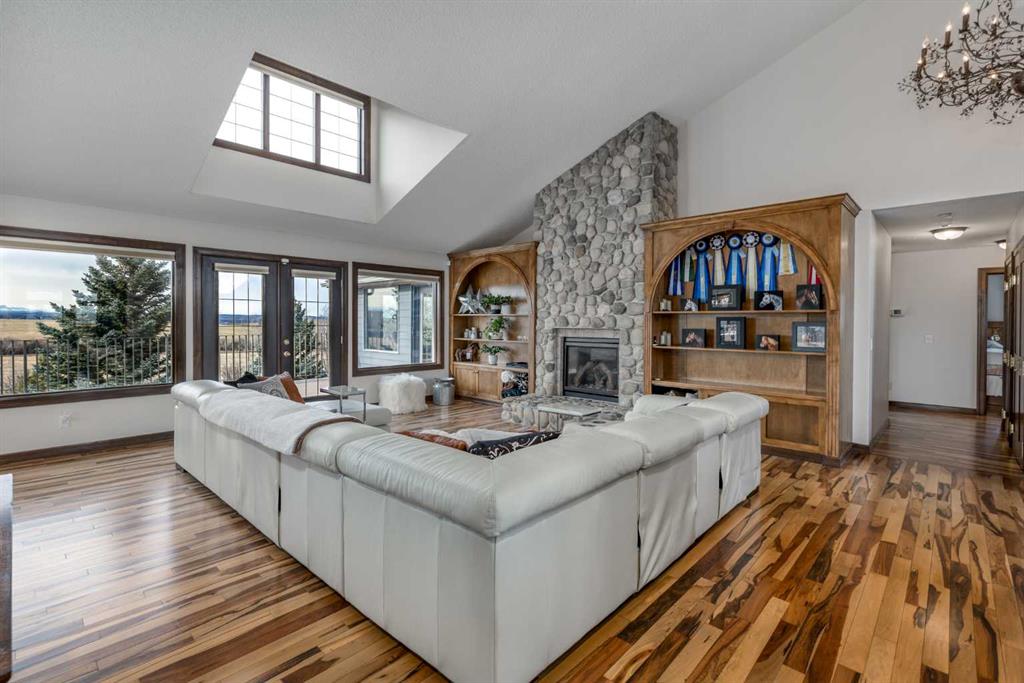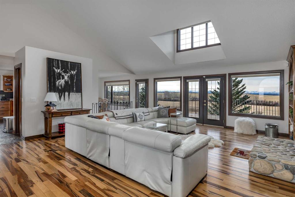 Heated Indoor Riding Arena/Barn, Luxury Walkout Bungalow with Stunning Mountain View | Minutes to Cochrane & Hwy 22 For the equestrian enthusiast, this property is truly exceptional. It is just so amazing and wonderful to be able to walk out to your own private in-door heated riding arena (70’ x 142’) that provides year-round training and riding opportunities. The attached heated barn includes 6 box stalls, a tack room with viewing window and cupboards and a sink to make a coffee or a snack. Along with a...