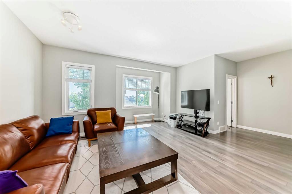 Welcome to the largest unit in Chestermere Station, offering over 2,130 sq ft—approximately 400 sq ft larger than any other unit in the complex—plus the rare bonus of an attached double garage. This well-maintained three-storey townhome features an open-concept main level with high ceilings, quartz countertops, a spacious kitchen island, and a large private balcony. Upstairs offers a primary suite with walk-in closet and ensuite, additional bedrooms, a bonus room, and upper-level laundry. Ideally located m...