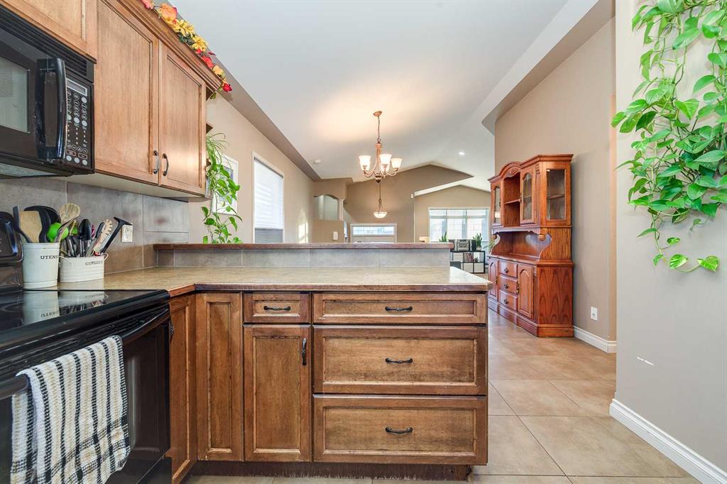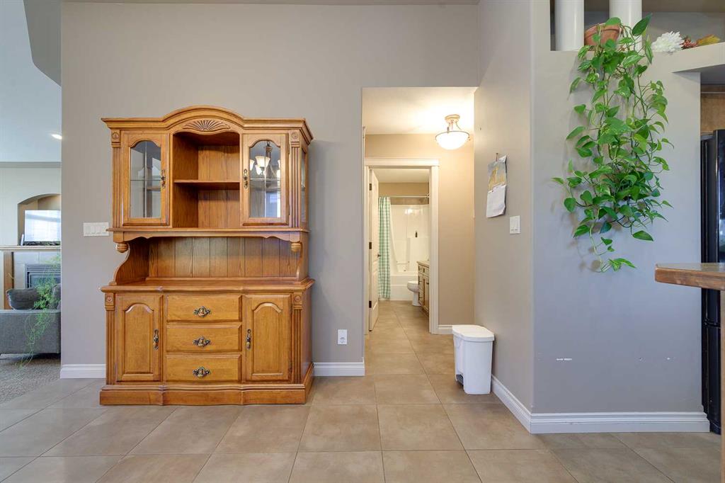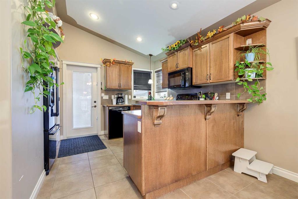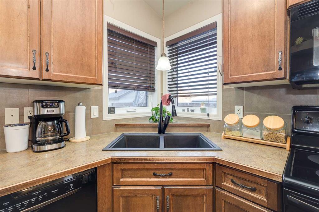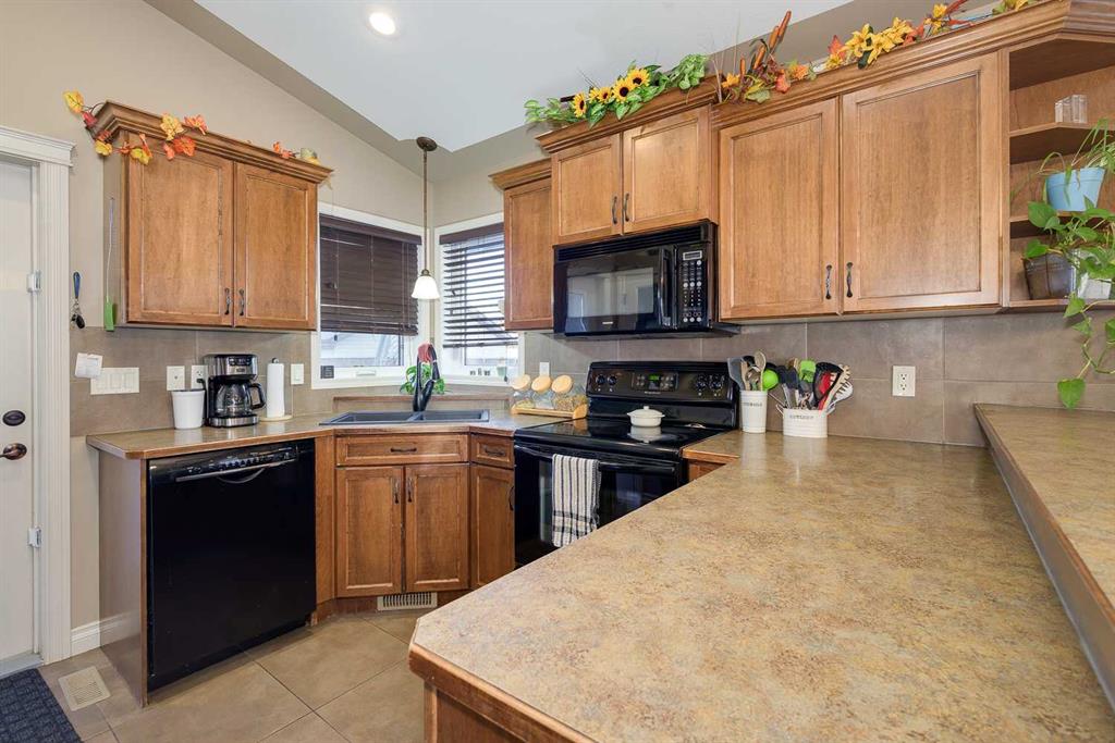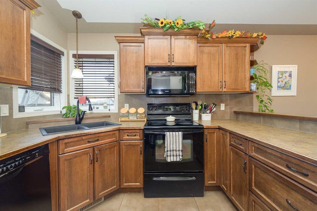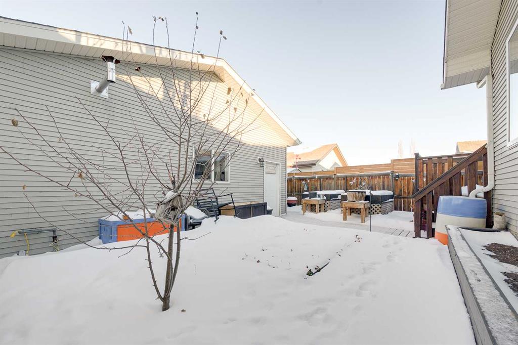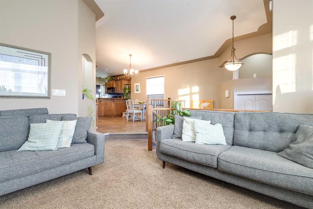Welcome to this well-designed bilevel in the family-friendly community of Blackfalds. From the moment you arrive, the inviting front porch leads into a spacious entryway that sets the tone for this thoughtfully laid-out home. The main level features a bright living room with a cozy gas fireplace, perfect for relaxing evenings, and an open-concept dining area and kitchen ideal for entertaining. The kitchen offers a pantry , sil-granite corner sink, and a raised breakfast bar for extra seating and functionali...
