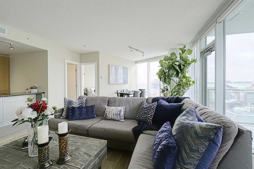 Your sweet spot in Victoria Park, the heart of Beltline. A delightfully walkable location just steps from downtown Calgary's brand new event centre, opening in the Fall of 2027! This luxurious two-bedroom, two-bath condo in the coveted Arriva building is the definition of stylish living. With over 1,014 square feet of living space, this SW-facing suite is drenched in sunshine and boasts soaring 9-foot ceilings. Floor-to-ceiling windows provide jaw-dropping views of the city, Calgary Tower and Saddledome. Wa...