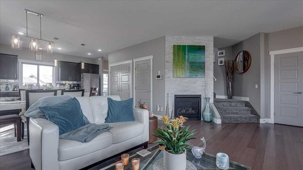 Stylish and well-appointed 2-storey home in desirable Springbrook offering modern finishes, thoughtful upgrades, and excellent functionality throughout. From the moment you arrive, the striking exterior stands out with stone accents, a covered front veranda, and a bold garage door design that adds character and curb appeal. Step inside to a bright, open-concept main floor featuring 9-foot ceilings, rich flooring, and large windows that fill the space with natural light. The inviting living room is anchored...