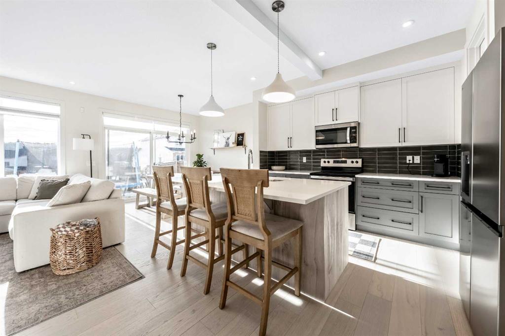 Situated on a quiet street in the centrally located community of Greystone—just steps from a park & playground—this beautifully upgraded home features a sun-filled, fully fenced south-facing backyard, ideal for both entertaining and everyday living. Thoughtfully designed with an open, modern layout, this 3-bedroom, 2.5-bath home offers over 1,762 sq. ft. of stylish living space and showcases numerous premium upgrades throughout. The main floor makes an immediate impression with an elegant 8’ glazed front do...