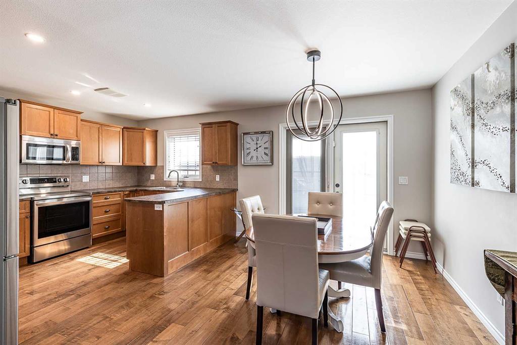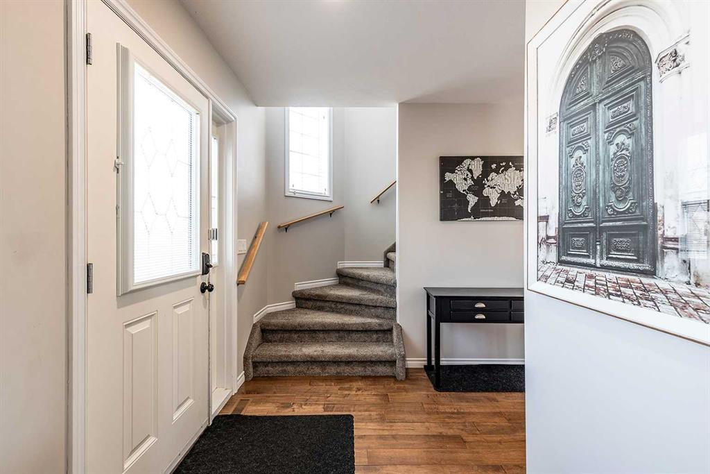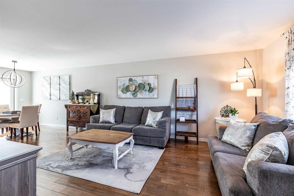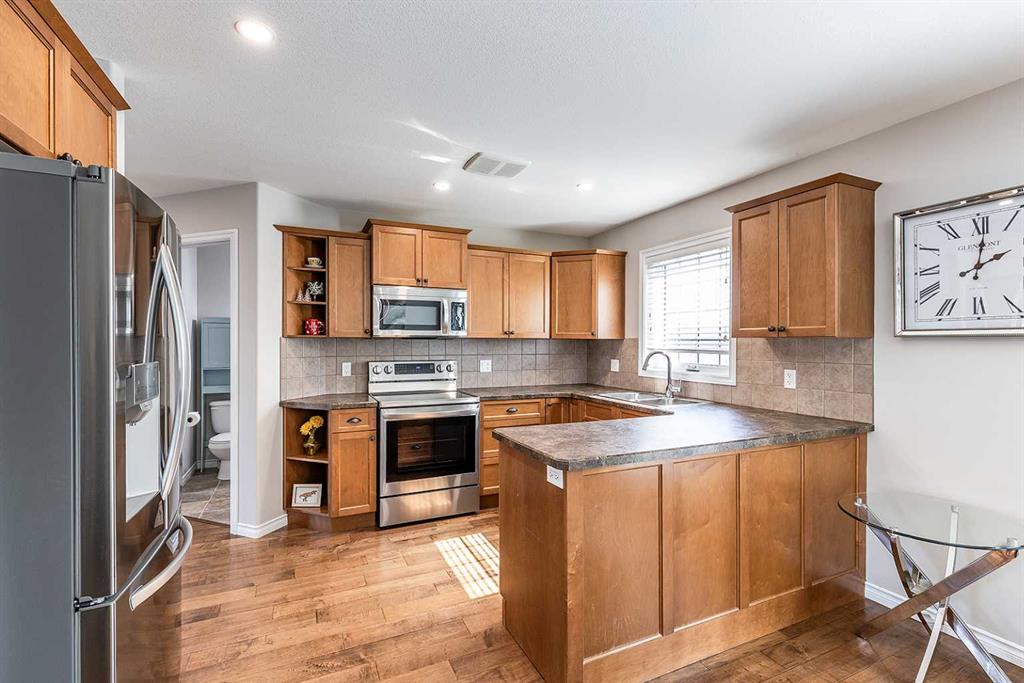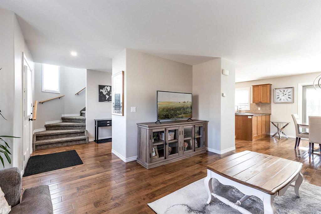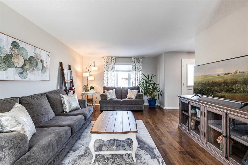 Welcome to Ranchlands — where this move-in ready home checks every box. Hardwood floors, flooded with natural light from oversized main floor windows, set the tone the moment you walk in. The kitchen is built for real life with plenty of maple cabinetry, generous counter space, and updated appliances (2021). A convenient powder room with in-suite laundry (washer/dryer 2021) and direct backyard access round out a main floor that just works. Upstairs, three well-sized bedrooms offer comfort and flexibility. T...