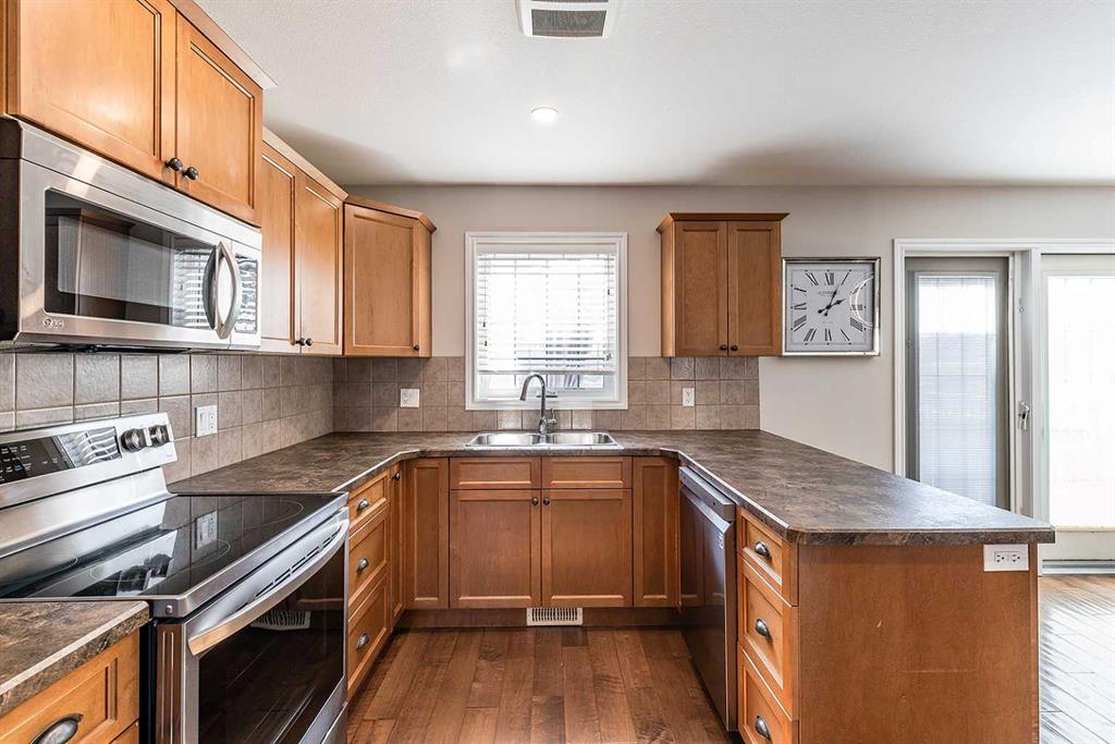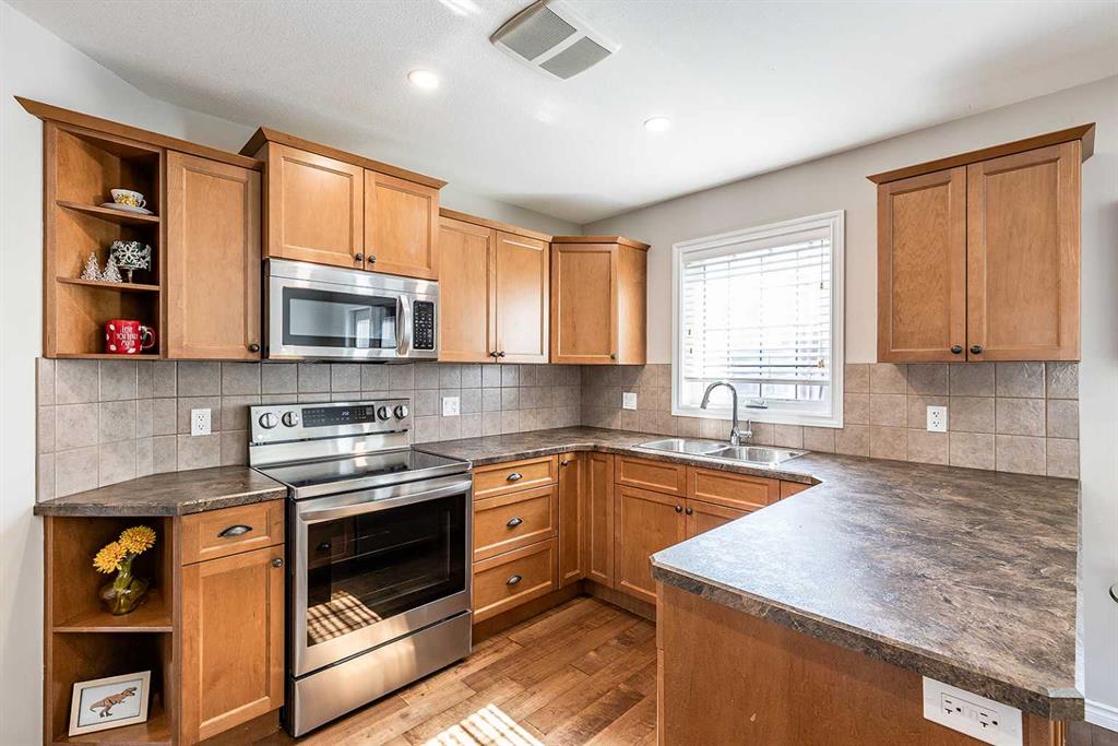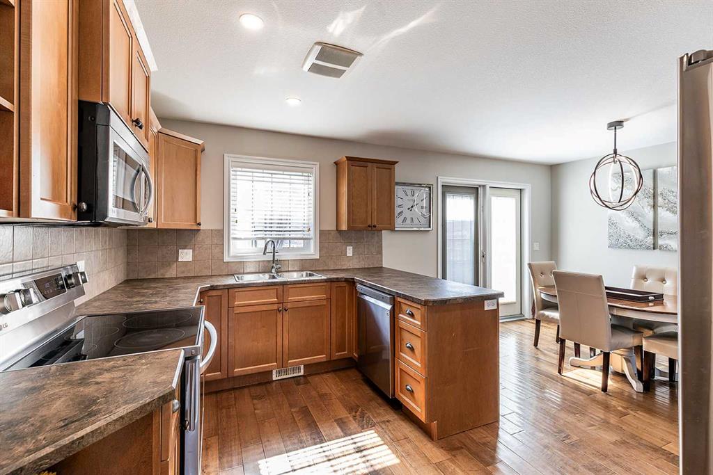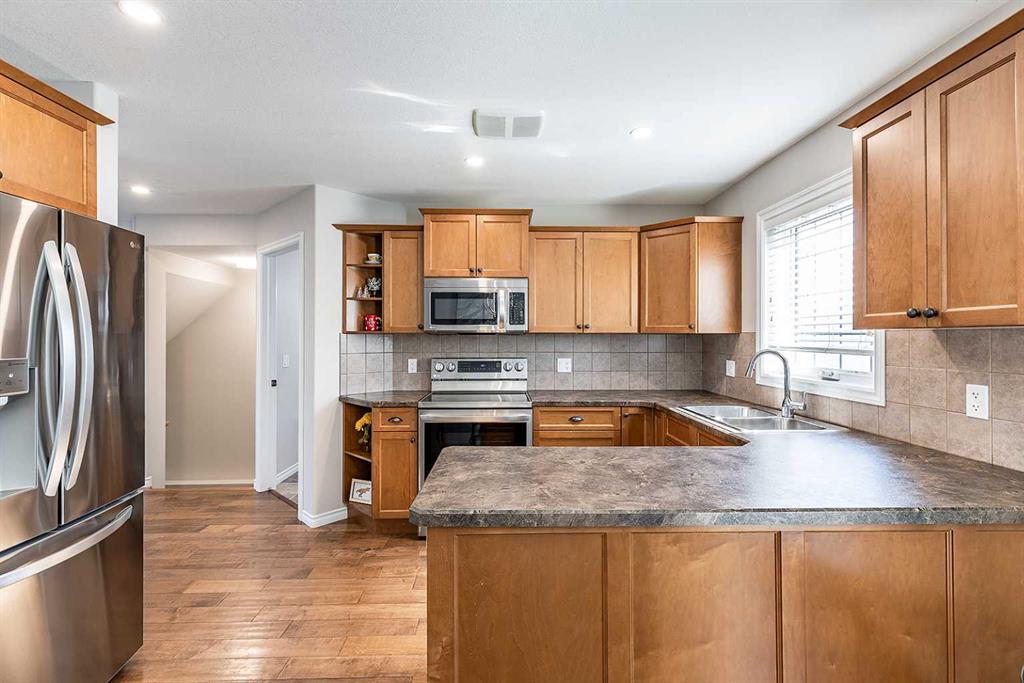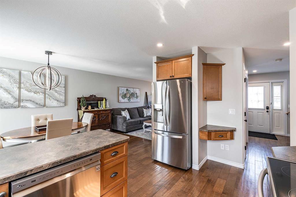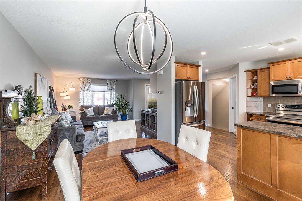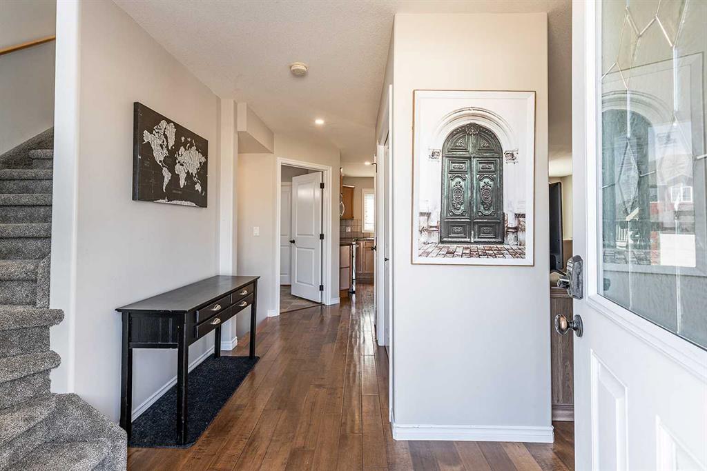 Welcome to Ranchlands — where this move-in ready home checks every box. Hardwood floors, flooded with natural light from oversized main floor windows, set the tone the moment you walk in. The kitchen is built for real life with plenty of maple cabinetry, generous counter space, and updated appliances (2021). A convenient powder room with in-suite laundry (washer/dryer 2021) and direct backyard access round out a main floor that just works. Upstairs, three well-sized bedrooms offer comfort and flexibility. T...