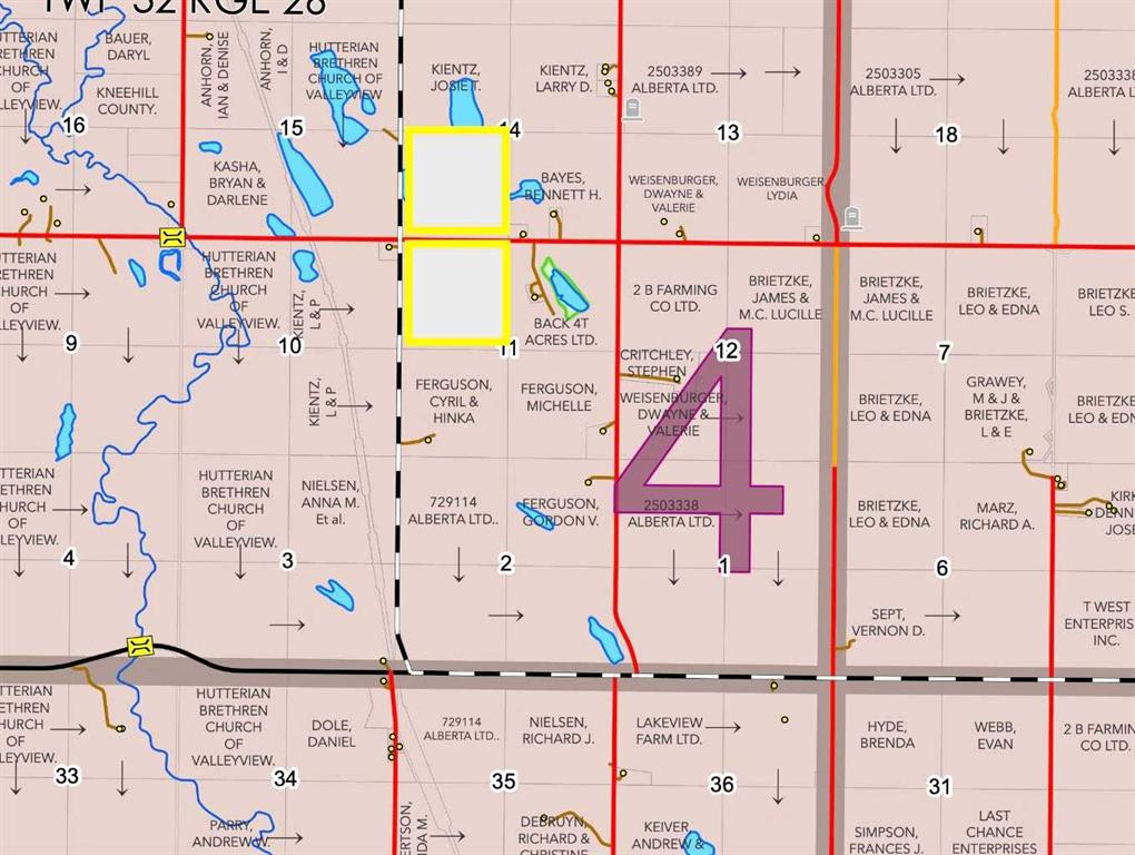 Increase your land base by a half section of Central Alberta farmland. Offered for sale are the following 2 quarters: NW 11-32-26 W4 and SW 14-32-26 W4. Check out this half section that parallels Secondary 806 South of Torrington. SW 14-32 was seeded to oats last crop year. Buy now and plan for next year's crop and input requirements. approx 260 cult acres, some pasture as well. 2 Bins on the SW 14-32 are 5,000 Bushel. Surface lease income to be determined.